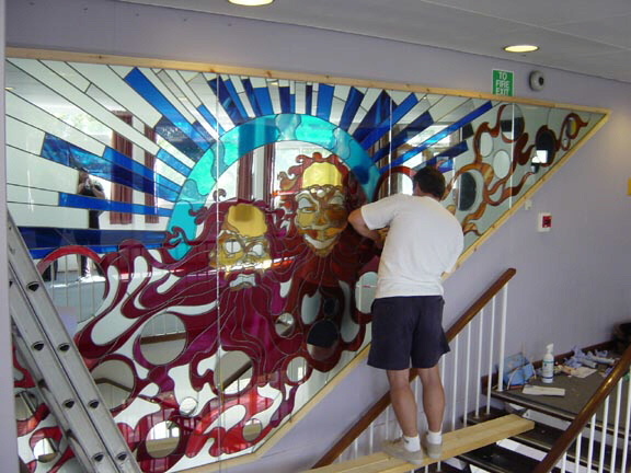 - Decorative glass for window or ceiling panels, or domes