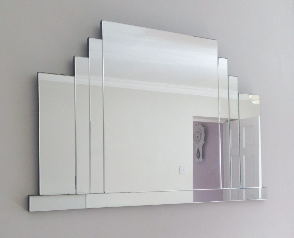 The large central shaped mirror is framed by 6 panels of flat, varying sized strips of mirror. Each section has been polished with a diamond cut finish, however, we can also finish the edges with either a gold, silver or ebony trim to create a more vintage look.
