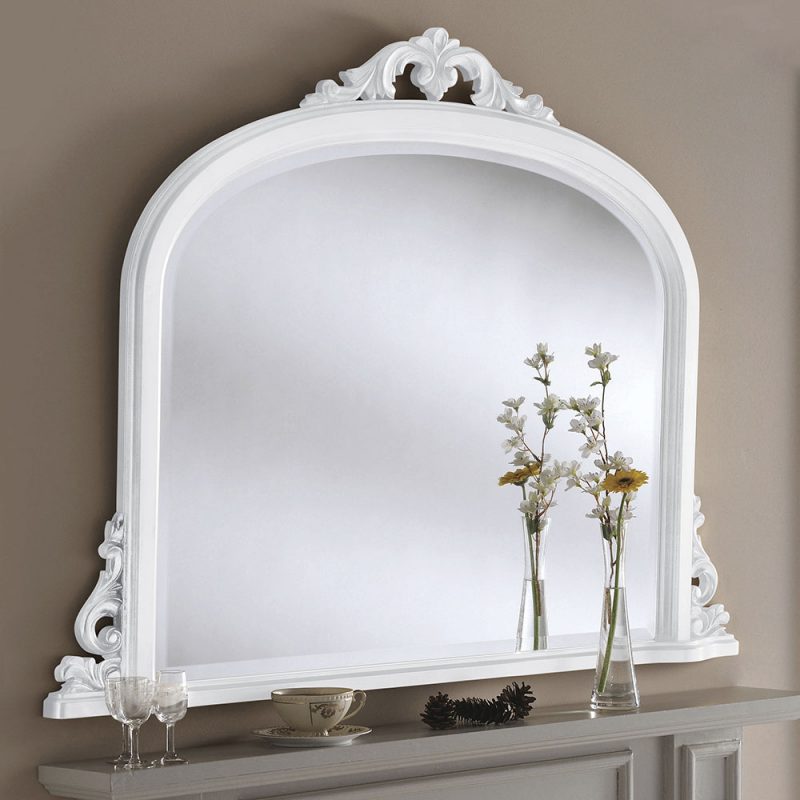 The Bernice Overmantle mirror features a central, bevelled mirror, framed with an ornate, frame available in white. This mirror is a beautiful addition to any room and looks stunning over a fireplace.